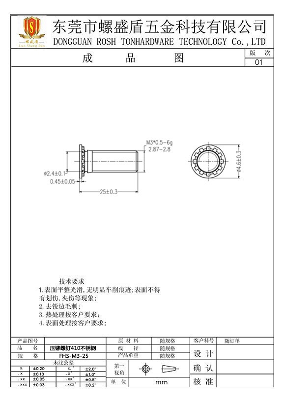 壓鉚螺絲410不銹鋼公制