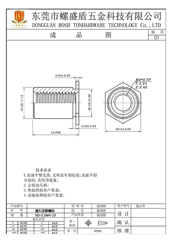 SO-3.5M4-10 壓鉚螺母柱
