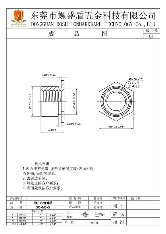 SO-M5-5 壓鉚螺母柱