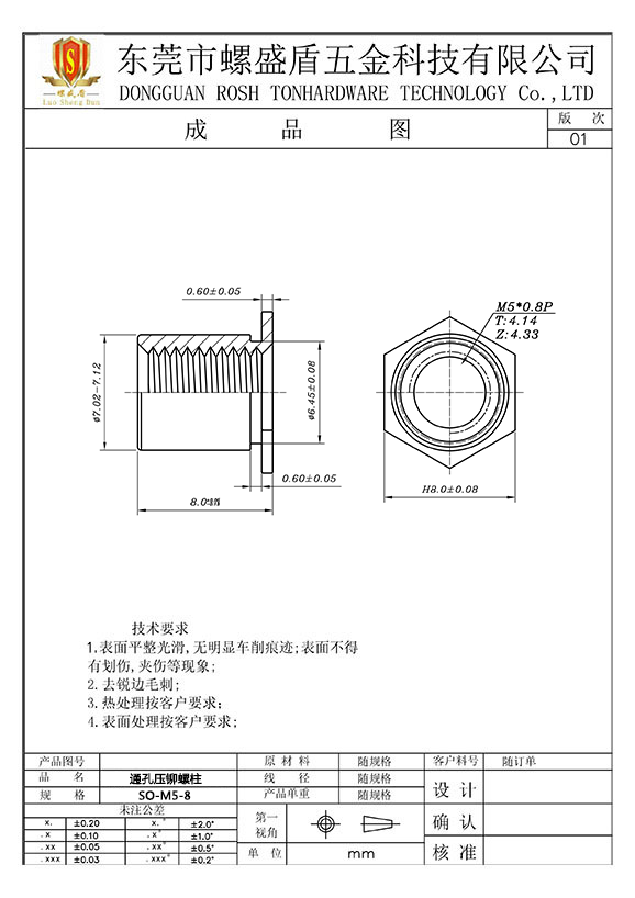 SO-M5-8 壓鉚螺母柱