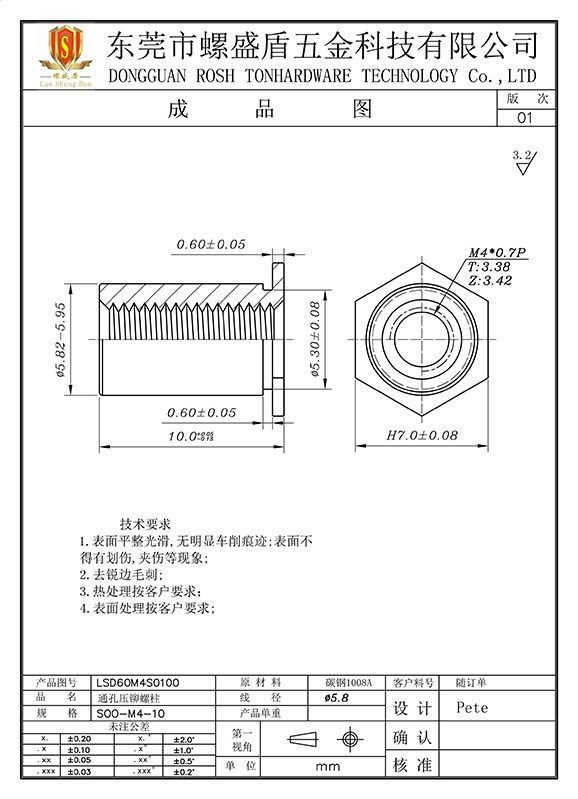 SOO-M4-10 壓鉚螺母柱