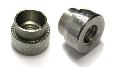 壓鉚螺母是通過壓花齒壓入鈑金的預置孔位,一般而言預置孔的孔徑略小于壓鉚螺母的壓花齒,通過壓力使壓鉚螺母的花齒擠入板內(nèi)使導致孔的的周邊產(chǎn)生塑性變形,變形物被擠入導向槽,從而產(chǎn)生鎖緊的效果。