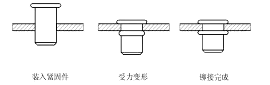 漲鉚就是指在鉚接過程中,鉚裝螺釘或螺母的部分材料在外力作用下發(fā)生塑性變形,與基體材料形成緊配合,從而實現(xiàn)兩個零件的可靠連接的方式。常用的ZRS等等就是采用此種鉚接型式實現(xiàn)與基材的連接。