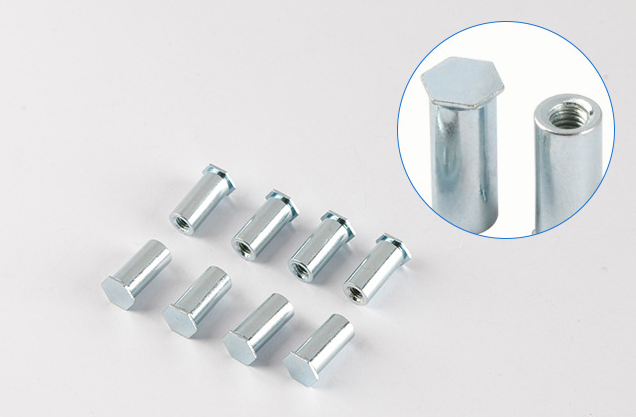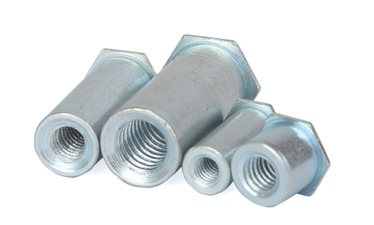 1、該類型的不銹鋼壓鉚螺母柱有的采用了易切削鐵,經熱處理后表現(xiàn)處理,有的采用了易用易切削不銹鋼,表面不處理。