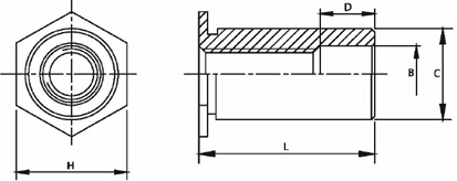 壓鉚螺母柱規(guī)格工程圖: