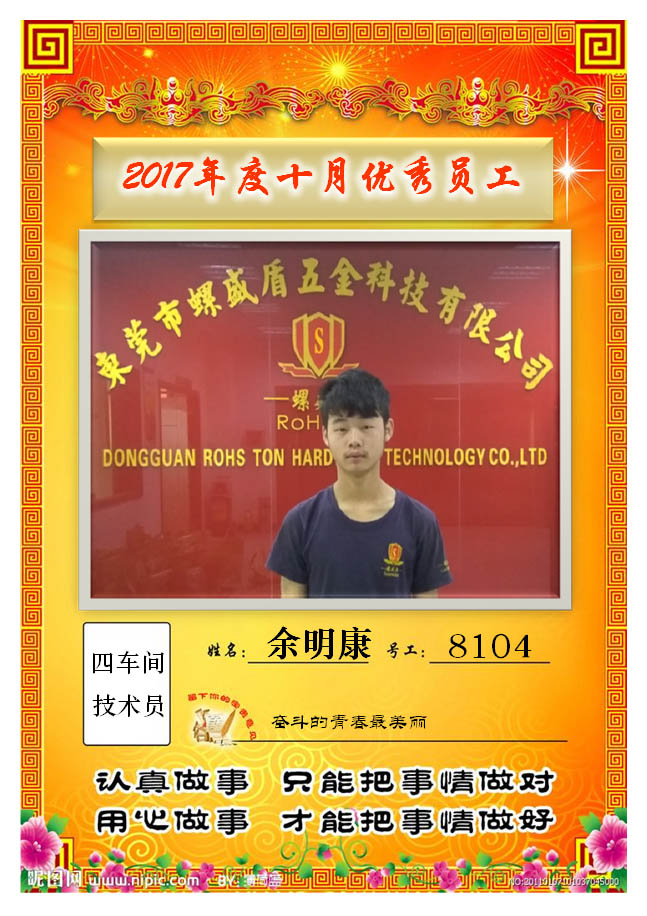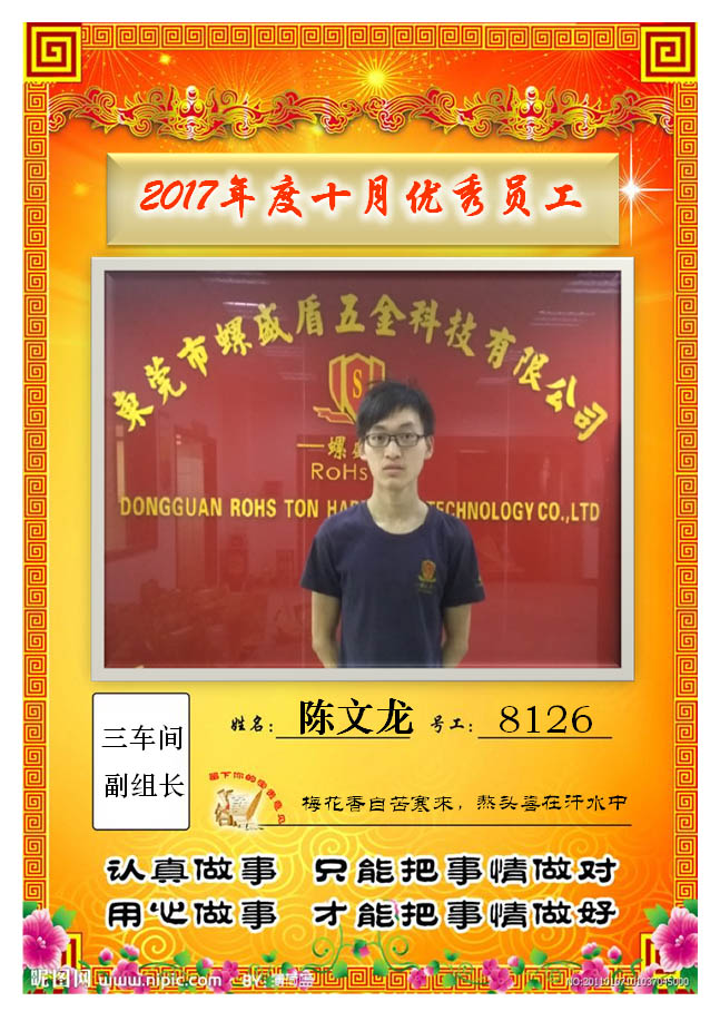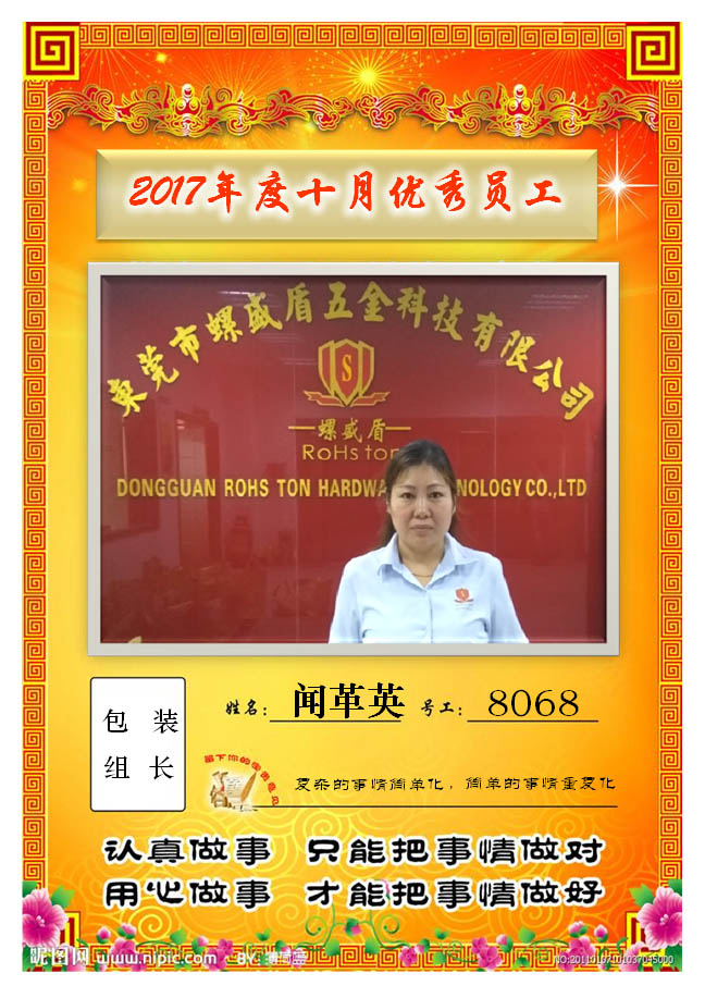 我們是一支最陽光,最具戰(zhàn)斗力的團(tuán)隊(duì)!我們團(tuán)結(jié)有愛,親如一家。為了榮譽(yù),為了目標(biāo),可以不顧一切奮戰(zhàn)到底。持續(xù)高標(biāo)準(zhǔn)做好壓鉚螺母 壓鉚螺母柱 壓鉚螺釘 通孔壓鉚螺母柱 盲孔壓鉚螺母柱 壓鉚螺絲等每一件緊固件產(chǎn)品。
