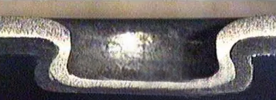 為控制鉚接底厚,某鉚接設(shè)備設(shè)計了行程開關(guān),即限制凸模下行的機械死點。行程開關(guān)值的設(shè)定直接反映沖壓鉚接接頭的底厚值,設(shè)置過小將產(chǎn)生鉚點開裂(見圖4);設(shè)置過大則兩層板之間無法形成有效鑲嵌,從而影響鉚接接頭強度。油壓開關(guān)值是控制油壓缸壓力到位、凸模返程的油壓值。一般在行程開關(guān)和油壓開關(guān)都觸發(fā)的情況下鉚接設(shè)備結(jié)束鉚接,凸模返程。若油壓開關(guān)值設(shè)定偏小,則會出現(xiàn)沒達到足夠的底厚值,凸模即回程,不能實現(xiàn)有效鉚接的情況。因此,在設(shè)備進廠前及產(chǎn)品試生產(chǎn)階段要預(yù)設(shè)行程開關(guān)及油壓開關(guān),并根據(jù)現(xiàn)場應(yīng)用時鉚點的底厚狀態(tài)進行調(diào)整,確保鉚接質(zhì)量。