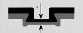 沖壓鉚接是通過圓形凸模和凹模,在專用的壓力裝置上進行一個沖壓過程,將被連接的板件擠壓進凹模,形成板件之間互鎖的機械連接。板料成形原理是:凸模不斷下行,凸模側(cè)材料受壓彎曲并局部發(fā)生塑性變形,同時擠壓凹模側(cè)材料一起向下流動,在沖壓力的作用下逐漸向凹模內(nèi)凹槽處流動,直至填充凹模的環(huán)形凹槽,這時凸模側(cè)的材料“嵌入”凹模側(cè)材料中,形成沖壓鉚接點,實現(xiàn)上下層板材的機械連接。板件沖壓鉚接剖面如圖1所示。