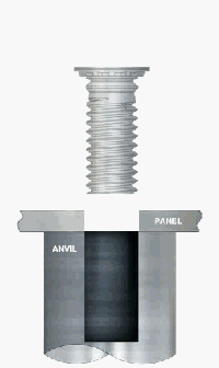 壓鉚工藝原理是通過壓花齒壓入鈑金的預(yù)置孔位,一般而言預(yù)置孔的孔徑略小于壓鉚螺母的壓花齒,通過壓力使壓鉚螺母的花齒擠入板內(nèi)使導(dǎo)致孔的的周邊產(chǎn)生塑性變形,變形物被擠入導(dǎo)向槽,從而產(chǎn)生鎖緊的效果。以下動圖讓你更了解螺盛盾壓鉚工藝。