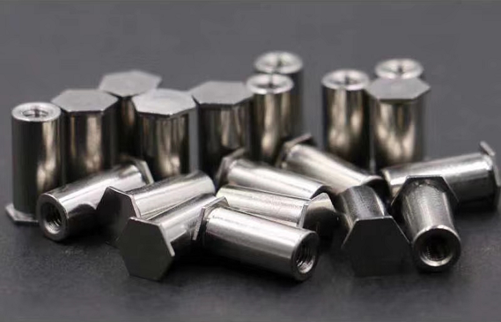 目前廣泛地使用在汽車、航空、儀器、家具、裝飾等機電和輕工產品的裝配上。為解決金屬薄板、薄管焊接螺母易熔,攻內螺紋易滑牙等缺點而開發(fā),它不需要攻內螺紋,不需要焊接螺母、鉚接牢固效率高、使用方便。