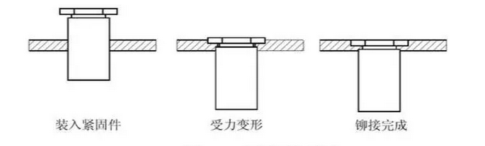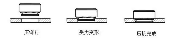 壓鉚就是指在鉚接的過程中,在外界壓力下,壓鉚件使基體材料發(fā)生塑性變形,而擠入鉚裝螺釘、螺母結構中特設的預制槽內,從而實現兩個零件的可靠連接的方式。