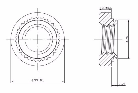 其原理是通過壓花齒壓入鈑金的預置孔內(nèi),一般而方預置孔的孔徑略小于壓鉚螺母的壓花齒,通過壓力使壓鉚螺母的花齒擠入板內(nèi)使導致孔的的周邊產(chǎn)生塑性變形,變形物被擠入導向槽,從而產(chǎn)生鎖緊的效果。