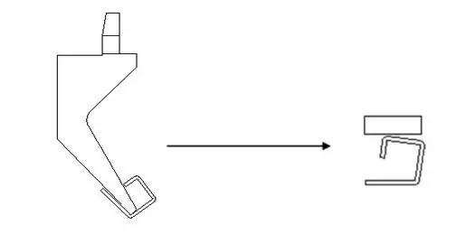 而圖(3)右側(cè)的情況就要選用尖刀來避位了,但同時(shí)也要注意,由于尖刀的頭很尖,所以它的強(qiáng)度比較差,所以它不能用于厚板的折彎,一般1.5mm以上的板厚都不使用尖刀,而在工藝安排上,再想辦法,例如把壓鉚螺母工藝安排在折彎以后等。見圖(5)