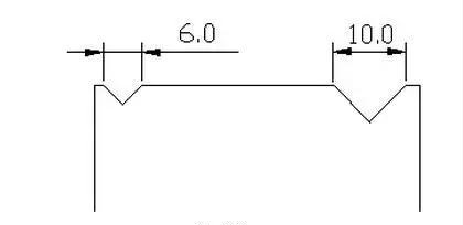分別是6號(hào)和10號(hào)槽,但選用夠小的刀槽折彎時(shí),很容易出現(xiàn)壓痕,一般6號(hào)槽以下的壓痕都比較明顯,所以當(dāng)工件表面不處理時(shí),當(dāng)折彎邊比較小時(shí),有明顯的壓痕,一來影響外觀,二來容易生銹,所以在設(shè)計(jì)時(shí)要注意。